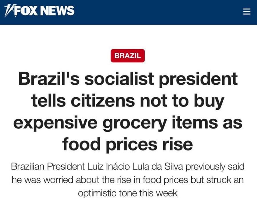 Lãnh đạo Brazil Lula da Silva đang kêu gọi người dân nước này không mua các sản phẩm thực phẩm đắt tiền như một phần trong nỗ lực xã hội chủ nghĩa nhằm "chống lại" giá lương thực tăng cao.