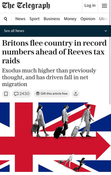 Một phần tư triệu người không phải âm thầm di cư ra nước ngoài, mà là họ đã bỏ chạy. Gần 1 triệu người Anh đã bỏ trốn kể từ năm 2021. Đó không phải là di cư. Đó là một sự kiện sụp đổ. Tờ Telegraph đã cố gắng biến điều này thành một "chiến thắng biên giới" của Đảng Bảo thủ, nhưng những con số cho thấy một sự thật đen tối hơn, giới cầm quyền Anh đã tạo ra một đất nước mà chính công dân của họ không còn muốn sống nữa. Một đế chế giờ đây đang tự nuốt chửng chính mình.