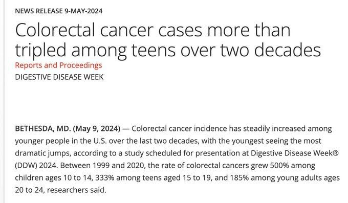 BETHESDA, MD. (Ngày 9 tháng 5 năm 2024) Theo một nghiên cứu dự kiến trình bày tại Tuần lễ Bệnh Tiêu hóa (DDW) 2024, tỷ lệ mắc bệnh ung thư đại trực tràng đã tăng đều đặn ở những người trẻ tuổi ở Hoa Kỳ trong hai thập kỷ qua, trong đó nhóm người trẻ có mức tăng vọt đáng kể nhất. Các nhà nghiên cứu cho biết, từ năm 1999 đến năm 2020, tỷ lệ ung thư đại trực tràng tăng 500% ở trẻ em từ 10 đến 14 tuổi, 333% ở thanh thiếu niên từ 15 đến 19 tuổi và 185% ở thanh niên từ 20 đến 24 tuổi.