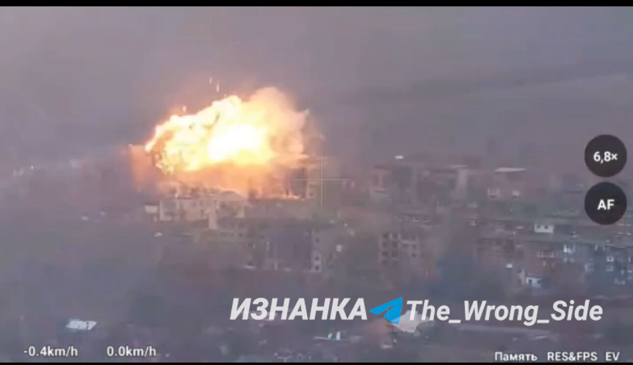 Một quả FAB-3000 khác được sử dụng để chống lại Lữ đoàn Thủy quân Lục chiến Độc lập số 38 của AFU ở Myrnohrad.