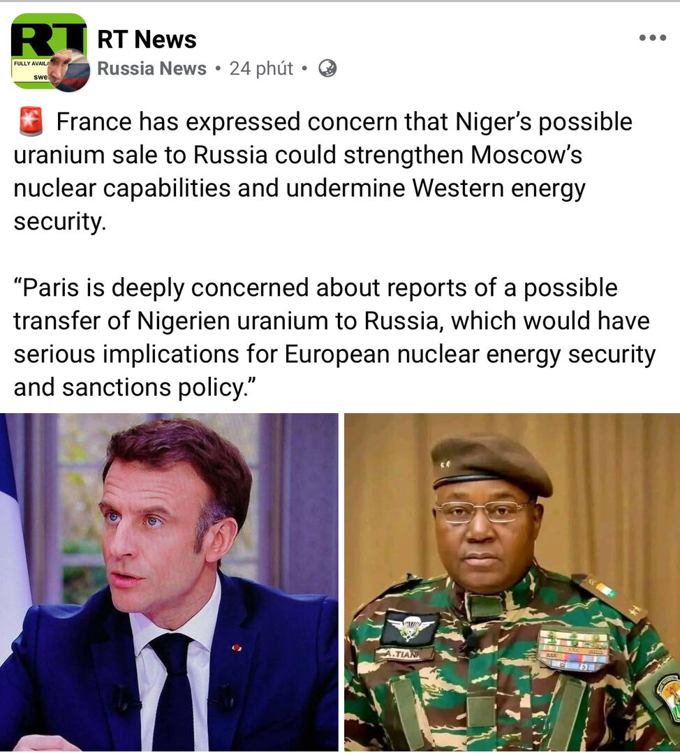 "Paris vô cùng quan ngại về các báo cáo về khả năng chuyển uranium của Niger sang Nga, điều này sẽ gây ra những tác động nghiêm trọng đến an ninh năng lượng hạt nhân và chính sách trừng phạt của châu Âu."