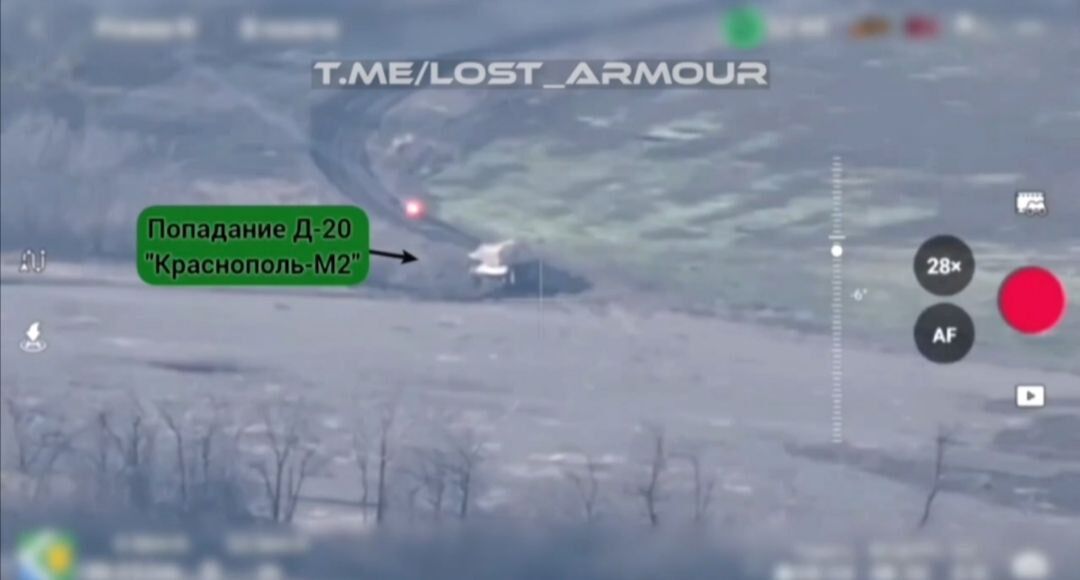 Đạn Krasnopol-M2, được cho là do lựu pháo D-20 bắn ra, đã bắn trúng chính xác vào chiếc xe.
