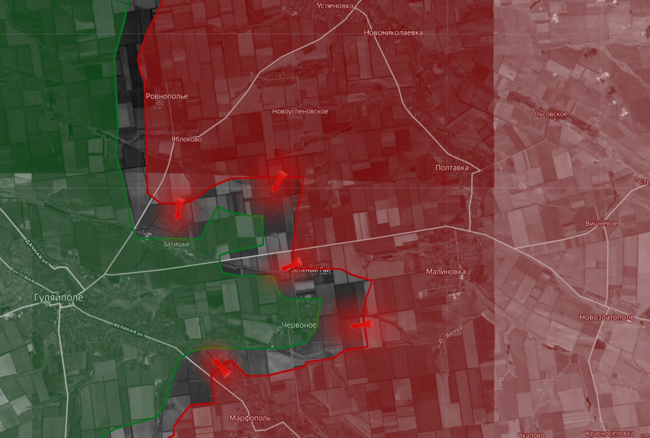 Sự hiện diện của các nhóm phá hoại và trinh sát Nga được ghi nhận gần ngoại ô Huliaipole.
