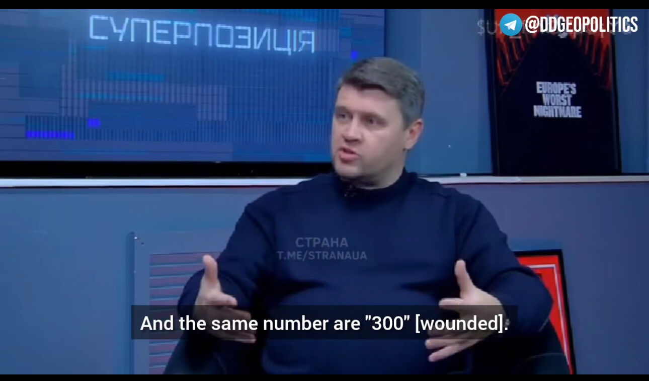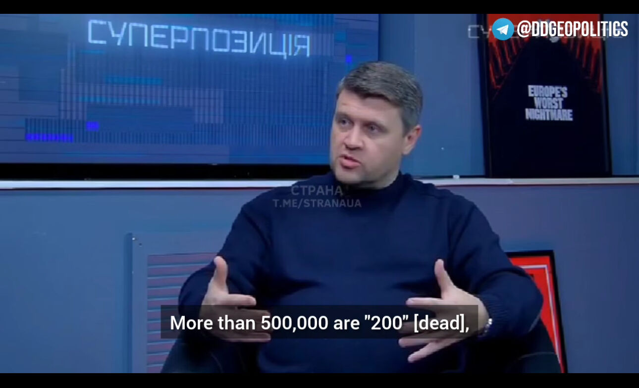 Nghị sĩ Ukraine Vadim Ivchenko (đảng Batkivshchyna) cho biết hơn nửa triệu binh sĩ AFU đã thiệt mạng trong chiến tranh, và một con số tương tự bị thương.