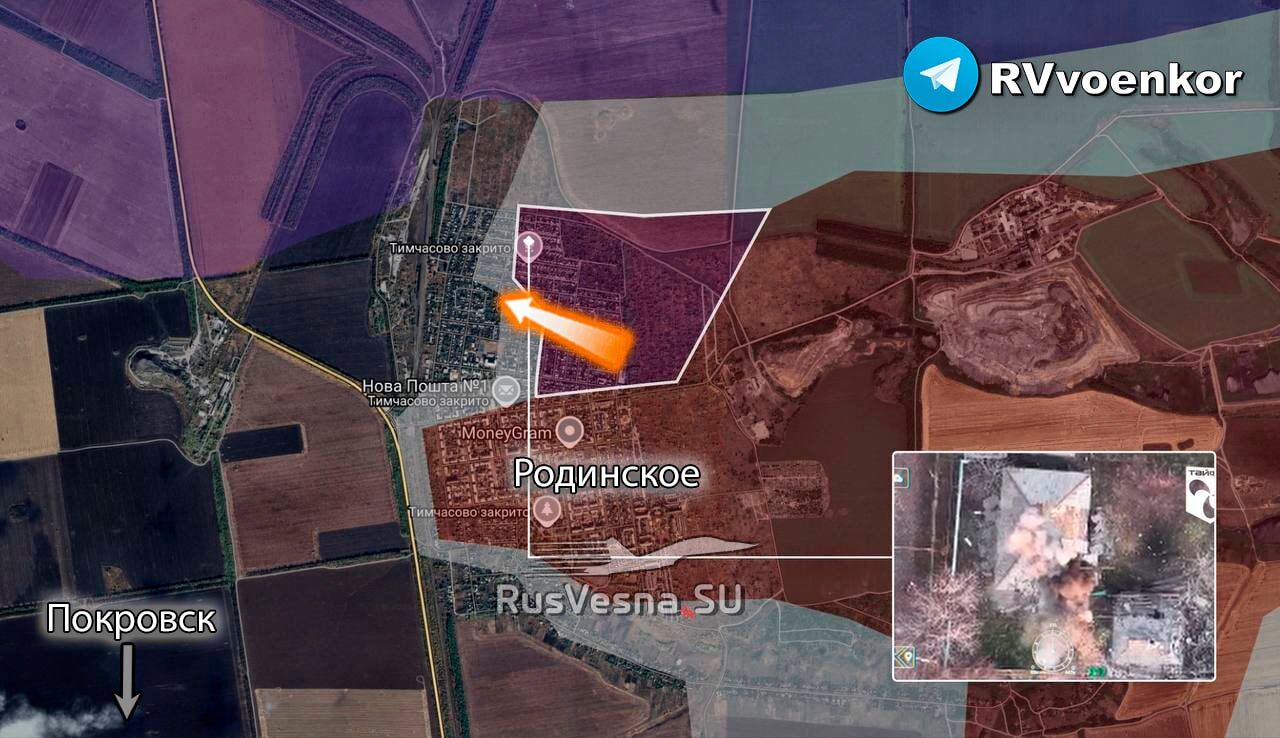 Quân đội Nga đã chiếm đóng khu vực trung tâm và đang tiến về phía bắc Rodynske, nằm ở phía bắc Myrnohrad và Pokrovsk.
