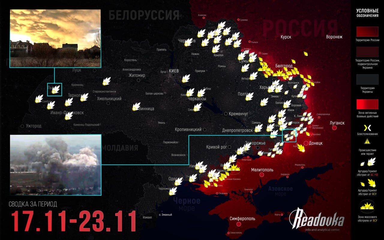 Quân đội Nga đã thực hiện một loạt các cuộc tấn công chính xác vào cơ sở hạ tầng cảng của đối phương ở khu vực Odessa, trong khi Lực lượng Vũ trang Ukraine đã triển khai hàng chục máy bay không người lái (UAV) tấn công các cơ sở năng lượng của Nga. Một phần DPR đã bị mất điện, và Nhà máy điện Shaturskaya ở khu vực Moscow bị hư hại.