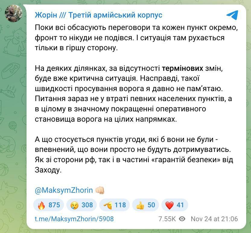 ‼️Tuyên bố của Phó Tư lệnh Quân đoàn 3 thuộc Lực lượng Vũ trang Ukraine, Maksym Zhorin