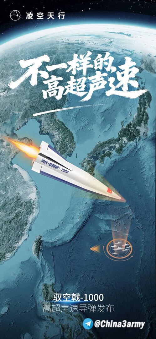 Công ty Linkun Tianxin của Trung Quốc đã công bố video quảng cáo tên lửa siêu thanh "Yukongzi-1000" (YKJ-1000).