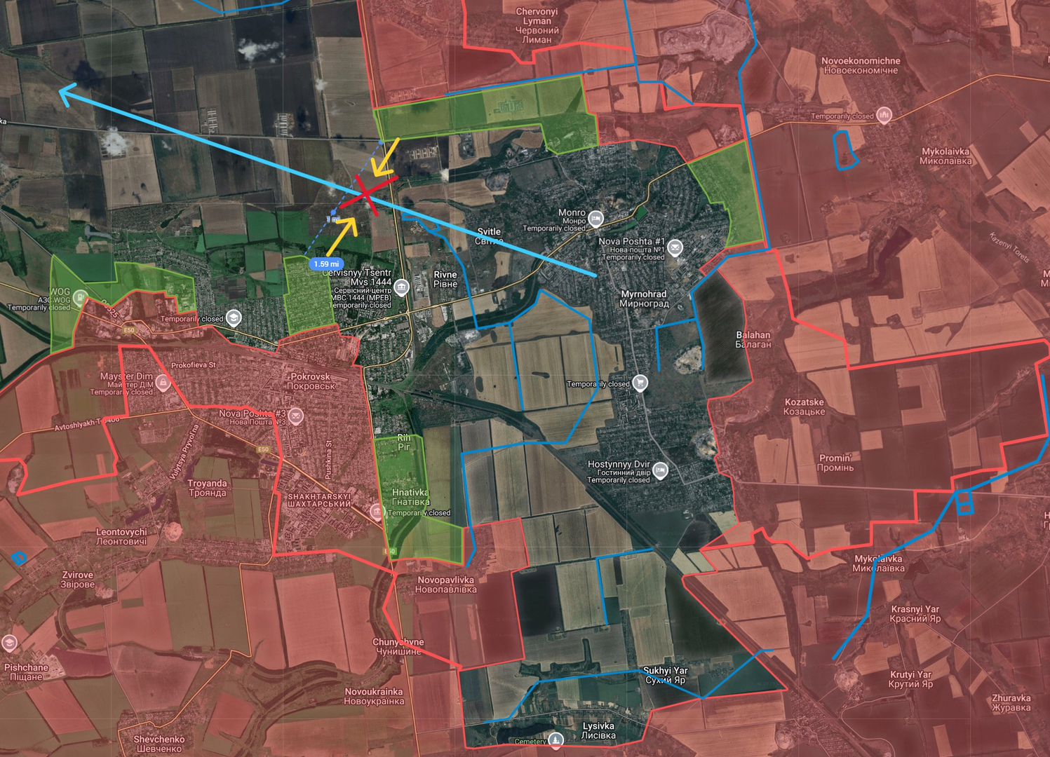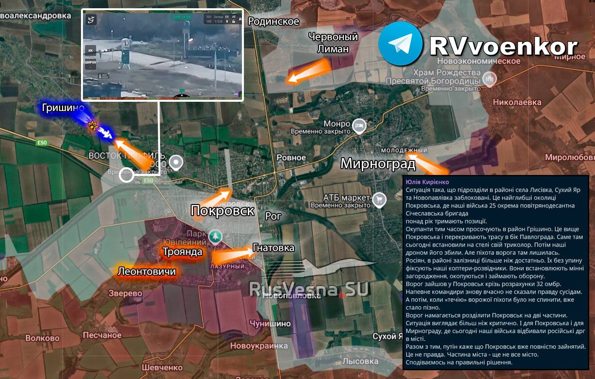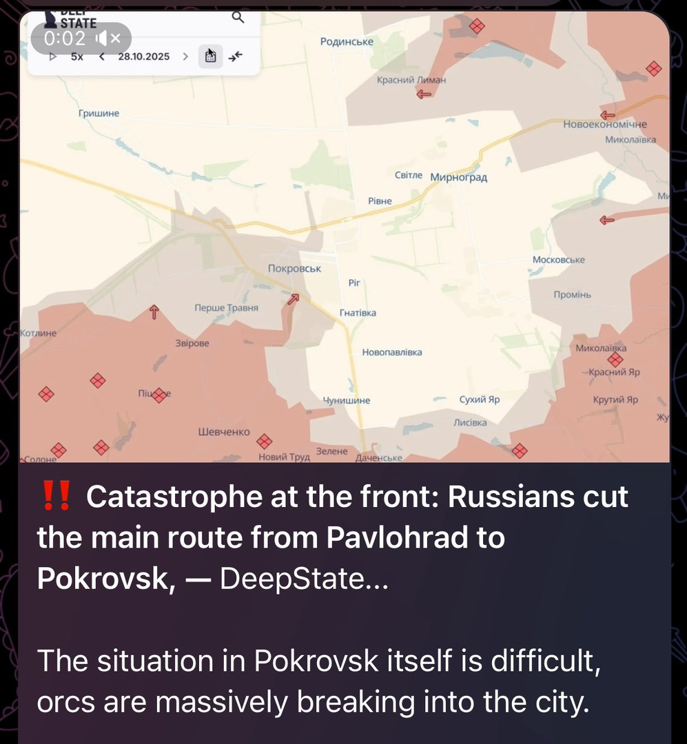 ▪️Quân đội Nga đang cố gắng chia cắt Pokrovsk thành hai phần; tình hình đang vô cùng nguy cấp đối với cả Pokrovsk và Mirnohrad.