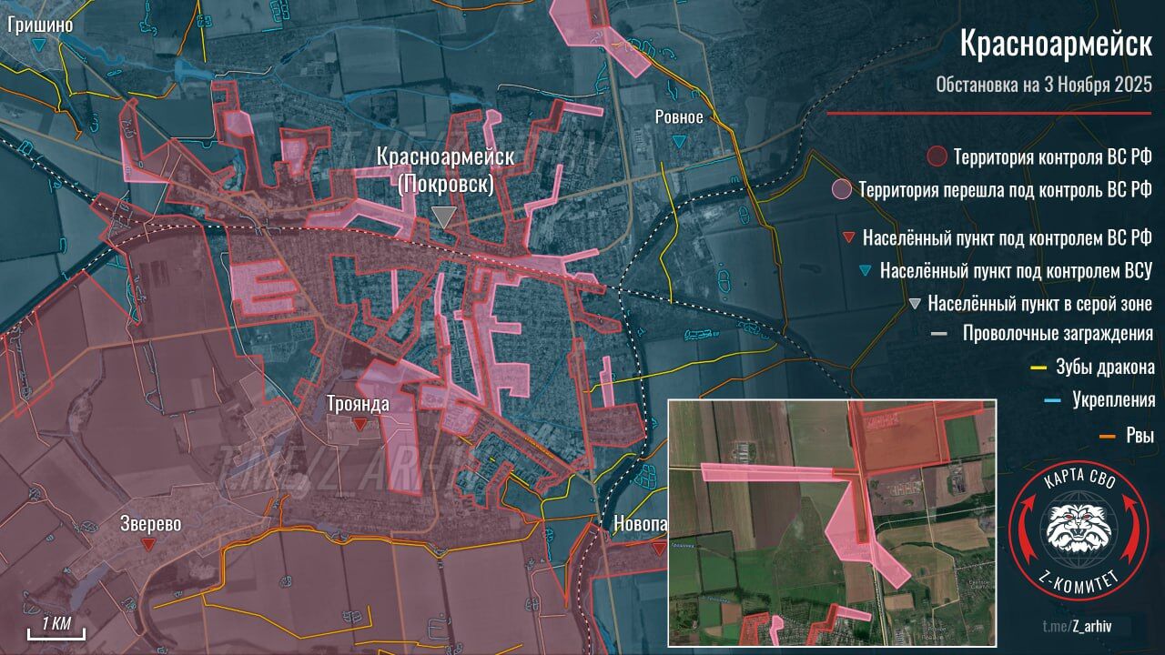 Pokrovsk. Quân đội Nga tiến công. Ngày 3 tháng 11, 6:00 chiều giờ Moscow