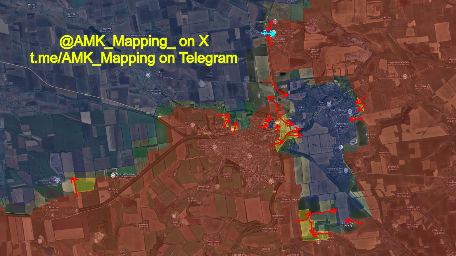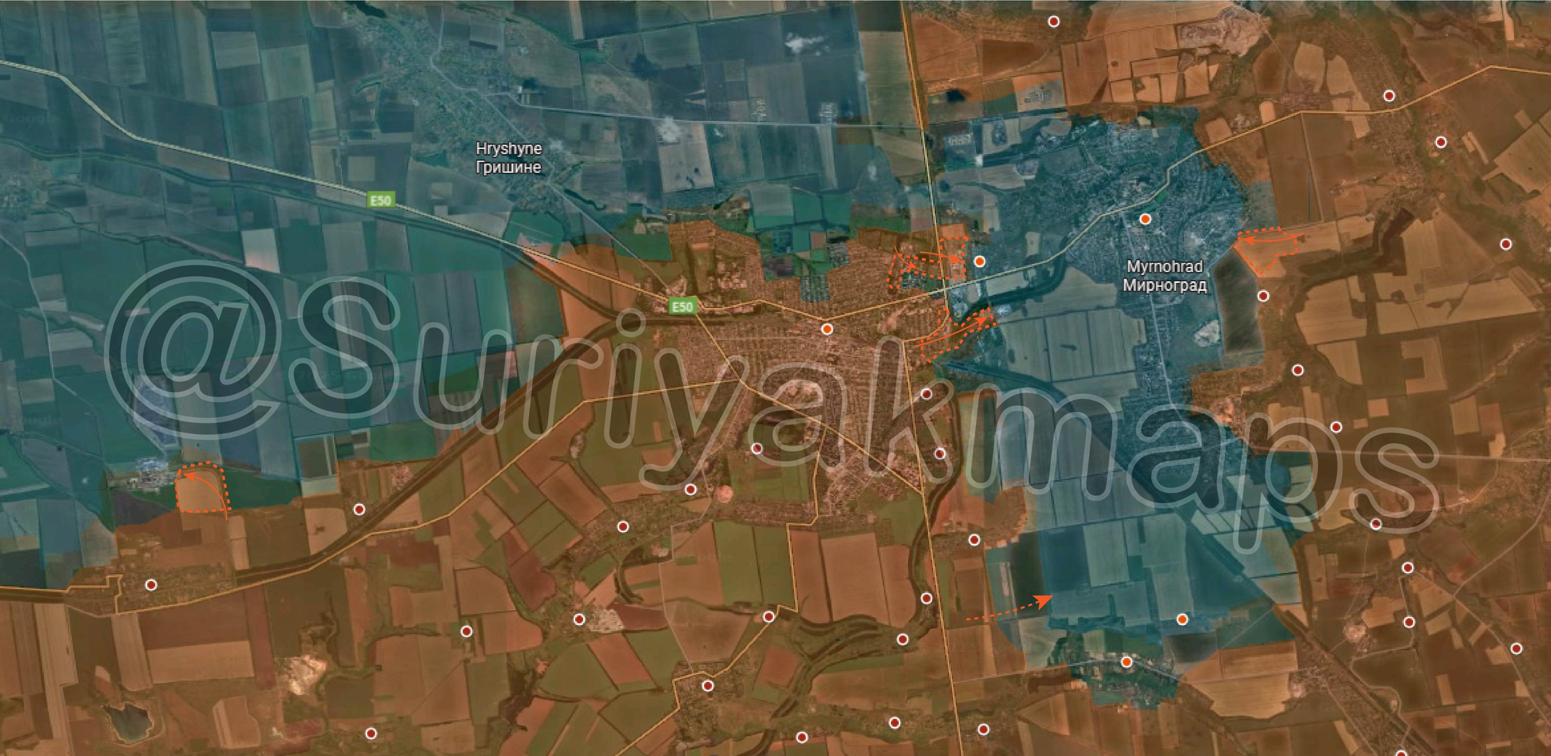 Tình hình mặt trận Udachnenskaya, Mirnograd và Pokrovsk: Tại thành phố Pokrovsk, Quân đội Nga đã hoàn toàn kiểm soát quận Karakovsky và tiến đến nhà máy luyện kim RSI. Ngoài ra, các tòa nhà cao tầng mới ở quận Dinas và nhà máy thức ăn chăn nuôi APK-Invest đã bị chiếm.