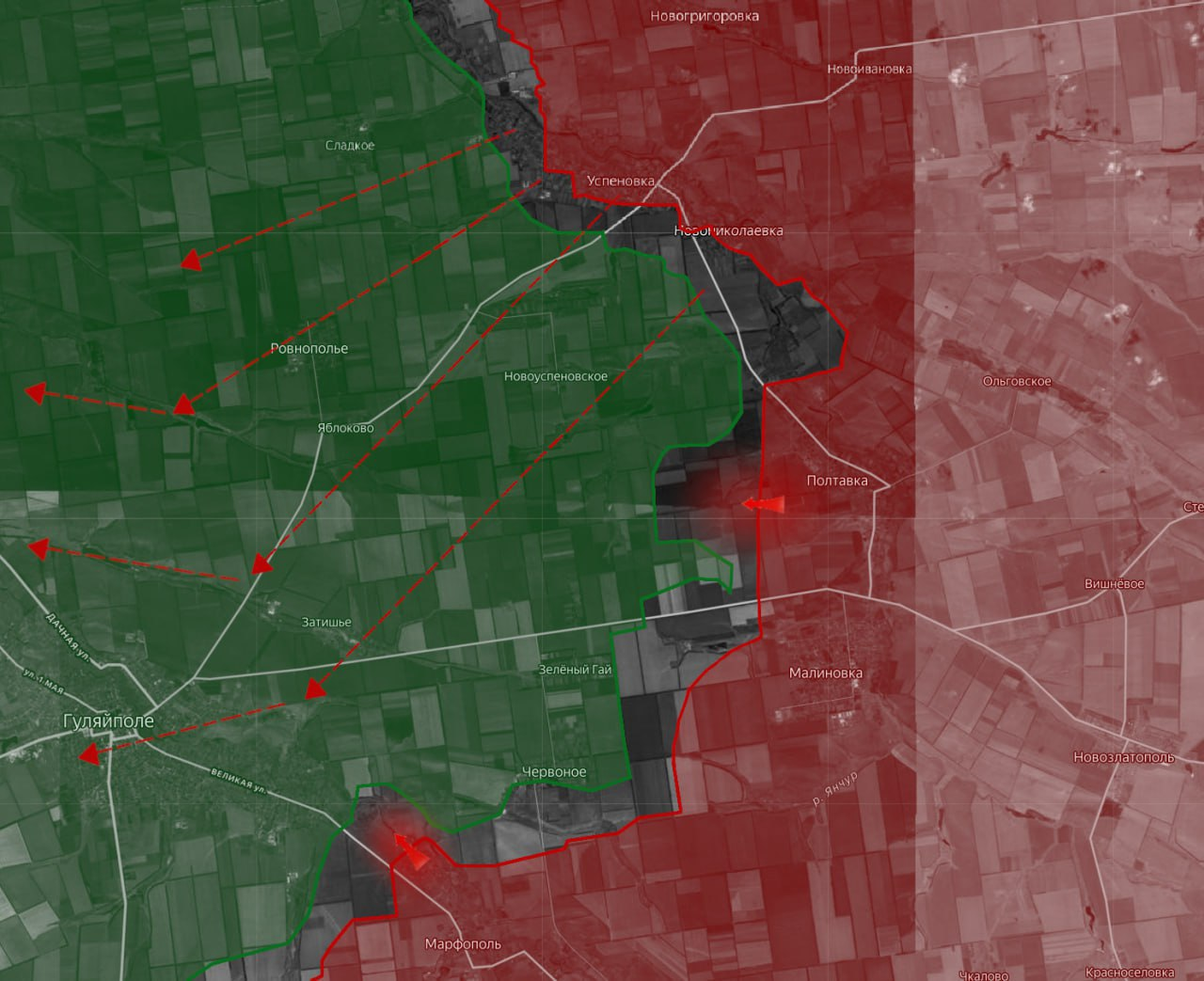 Theo dự báo của họ, Lực lượng Vũ trang Nga sắp tiến đến một khu vực hoàn toàn không có công sự và đô thị hóa thưa thớt của vùng Zaporizhzhia, với chướng ngại vật duy nhất trên đường đi của họ là Huliaipole. Cần lưu ý rằng mặt trận đã áp sát Huliaipole từ phía nam kể từ những ngày đầu của cuộc chiến. Giờ đây, sau khi chiếm được Uspenovka, quân đội Nga có cơ hội tiếp cận thành phố từ phía đông bắc và phía đông, điều này sẽ làm phức tạp nghiêm trọng hoạt động hậu cần của Lực lượng Phòng vệ dọc theo hai con đường dọc theo bờ sông ở phía bắc. Con đường còn lại đến Zaliznychne chỉ cách mặt trận 7 km và cũng đã được kiểm soát; từ lâu nó đã không còn là một tuyến đường tiếp tế quan trọng. Nghĩa là, trong tương lai gần, Huliaipole có thể rơi vào "túi lửa" với hậu cần rất khó khăn trên bất kỳ con đường nào, và Uspenovka là nút thắt phòng thủ quan trọng cuối cùng trên đường đến đây.