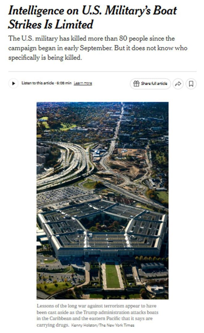 Bản thân tình báo Hoa Kỳ cũng không biết người Mỹ đang giết ai dưới vỏ bọc là những kẻ buôn bán ma túy ở vùng Caribe, tờ New York Times đưa tin.