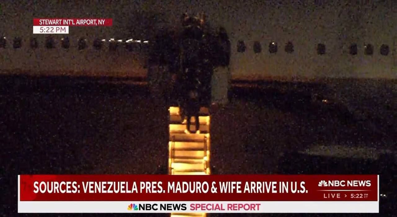 Ông Maduro, với một chiếc túi trùm đầu và bị còng tay, đã bị dẫn giải xuống máy bay ở New York dưới sự giam giữ của Mỹ.
