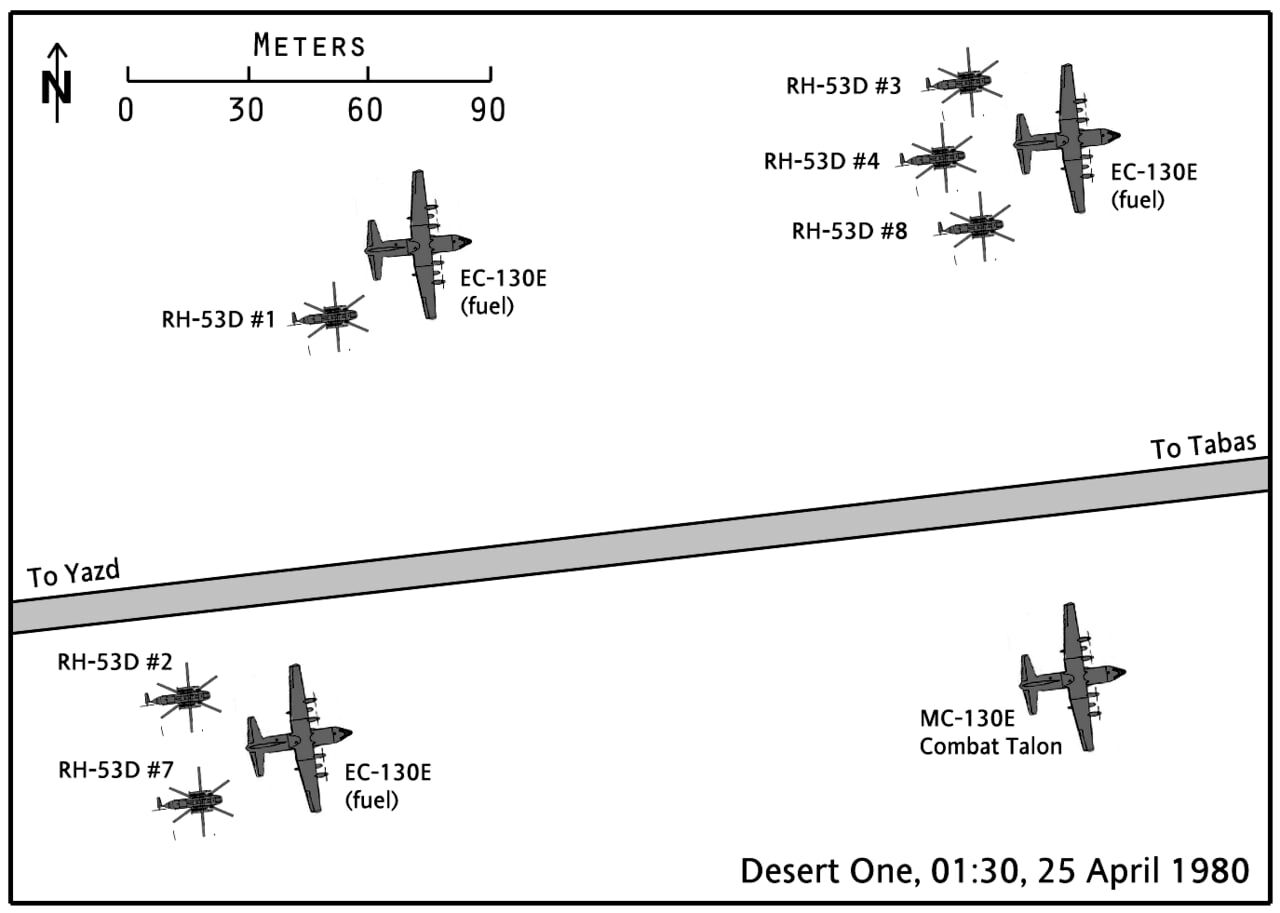 Nhưng, như thường lệ, mọi thứ đều diễn ra không như ý muốn ngay từ đầu. Do sự chuẩn bị không đầy đủ của chiến dịch "Delta" và các vấn đề về thiết bị, một trong tám chiếc trực thăng thực hiện nhiệm vụ đã rơi xuống nước ngay sau khi cất cánh từ tàu sân bay. Một chiếc khác bị lạc trong bão cát và phải quay trở lại. Chỉ có sáu chiếc trực thăng đến được căn cứ tạm thời đầu tiên (một sân bay bỏ hoang của Anh) trong sa mạc.