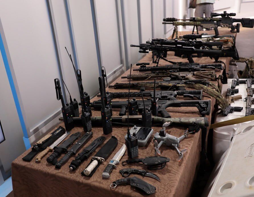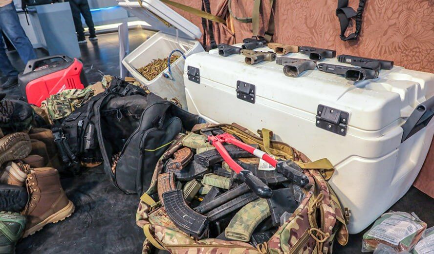 Tổng cộng 134 băng đạn và 12.846 viên đạn các loại, bao gồm 5.56x45mm và 7.62mm (AKM), đã bị thu giữ. Một trong những khẩu súng lục có khả năng xuyên giáp. Ngoài ra, lực lượng chức năng đã tịch thu một máy bay không người lái với hai camera, 10 thiết bị liên lạc, dao nhảy dù, trạm điện di động, kìm cắt khóa và các phù hiệu nhận dạng, bao gồm cả phù hiệu của cái gọi là phong trào phản cách mạng "30 tháng 11" và phù hiệu "tự vệ nhân dân".