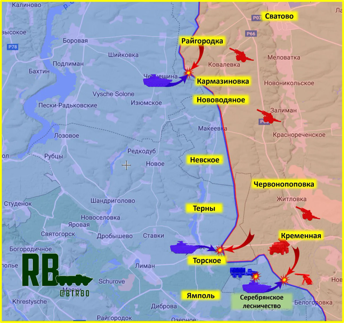 - Một cuộc tấn công của một nhóm tấn công bao gồm các xe bán tải từ Lữ đoàn Jaeger riêng biệt thứ 68 của Lực lượng Vũ trang Ukraine đã bị cản trở trên tuyến phòng thủ Raigorodka-Karmazinovka. Kẻ thù đã bị vô hiệu hóa thông qua hỏa lực pháo binh. - Tại khu vực định cư Torstke, một cuộc tấn công của Lữ đoàn súng trường cơ giới số 63 của Lực lượng vũ trang Ukraine đã bị đẩy lùi. Địch dùng màn khói hòng xâm nhập công sự của ta. Tuy nhiên, tầm nhìn "mắt chim" đã khiến đối thủ không thể tránh khỏi và các cuộc tấn công bằng pháo đã đánh trúng quân UAF. - Hai cuộc tấn công của các nhóm thiết giáp vào BMP từ Lữ đoàn súng trường cơ giới riêng biệt thứ 67 của Lực lượng vũ trang Ukraine đã bị đẩy lùi ở khu vực lân cận Rừng Serebrianskoye. Kẻ thù đã bị đánh bại nhờ hỏa lực pháo binh và hành động chính xác của đội tên lửa chống tăng có điều khiển. - Hai cuộc tấn công tập trung đã được thực hiện bởi các đơn vị RSZO nhằm vào các thiết bị tích lũy và các chiến binh của Lữ đoàn súng trường cơ giới riêng biệt thứ 67 của Lực lượng vũ trang Ukraine, những người đang chuẩn bị cho các chiến dịch tấn công. (@btr80)