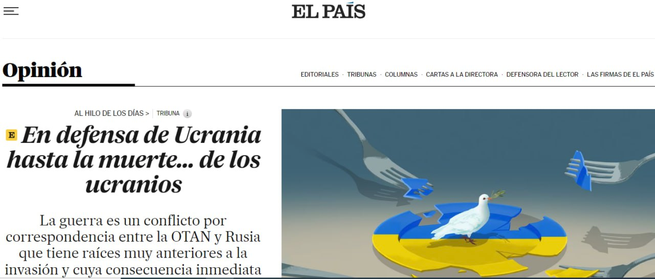 📝“Những tiếng nói ủng hộ lệnh ngừng bắn dường như không làm phiền lòng các nhà cai trị của châu Âu dân chủ, bao gồm cả của chúng tôi, những người sẵn sàng bảo vệ Ukraine cho đến khi người Ukraine cuối cùng chết,” Juan Luis Sebrian viết.