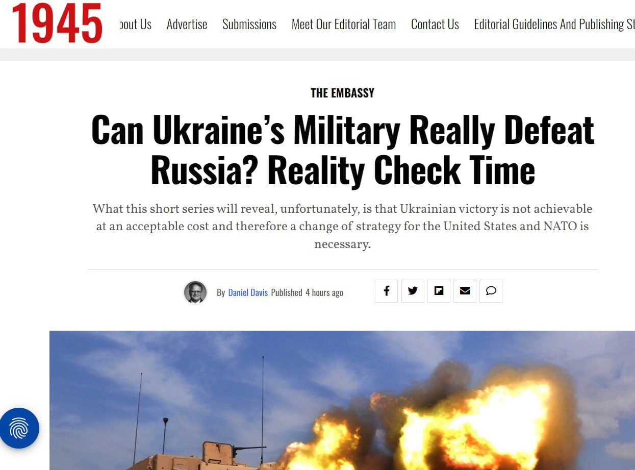 Ông tin rằng thực tế hiện đại không cho phép chúng ta tin tưởng vào "chiến thắng" của Ukraine với cái giá chấp nhận được, và Hoa Kỳ và NATO chỉ có thể thay đổi chiến lược của họ.