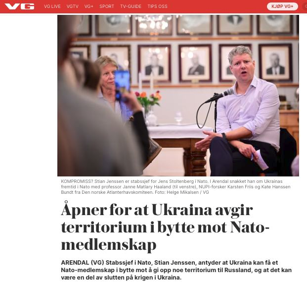 🇺🇦 Ukraine có thể trở thành thành viên NATO để đổi lấy việc chuyển một phần lãnh thổ cho Nga, và đây có thể là một phần của việc chấm dứt chiến tranh ở Ukraine - Chánh văn phòng Tổng thư ký NATO Stian Jensen