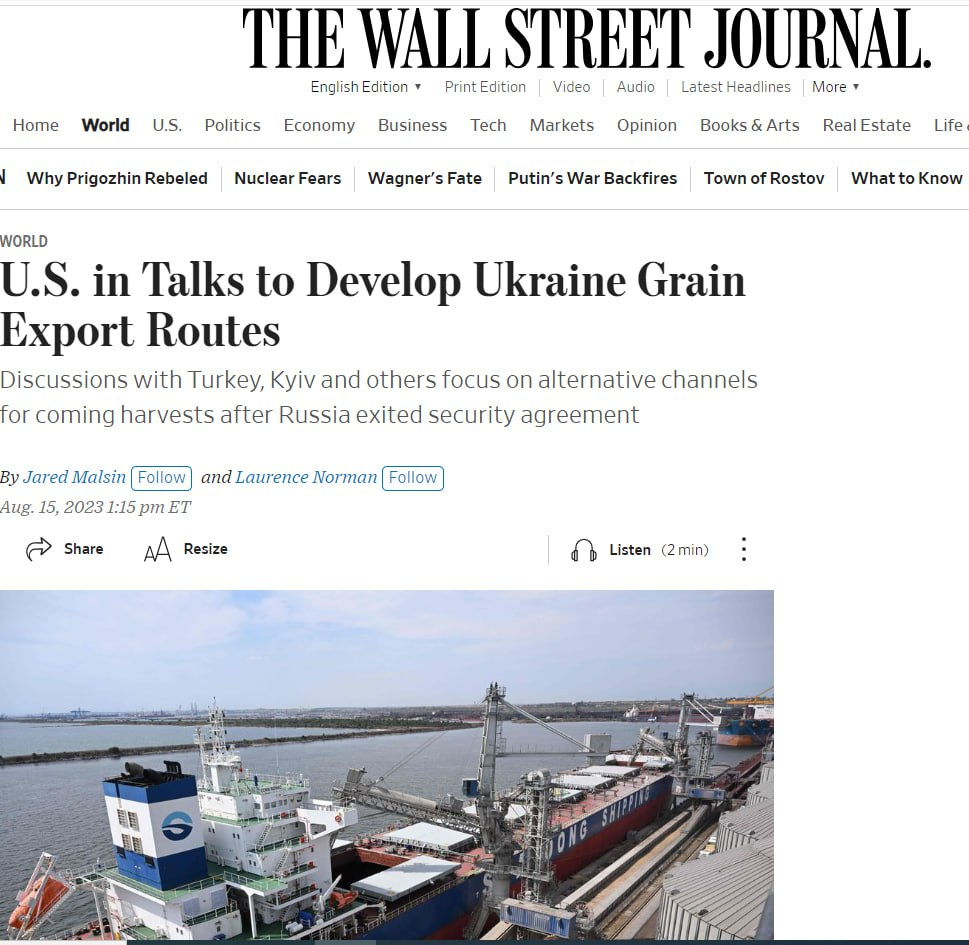 @ Sprinter99800 Mỹ đang đàm phán với Thổ Nhĩ Kỳ và Ukraine về các cách khả thi để xuất khẩu ngũ cốc - WSJ