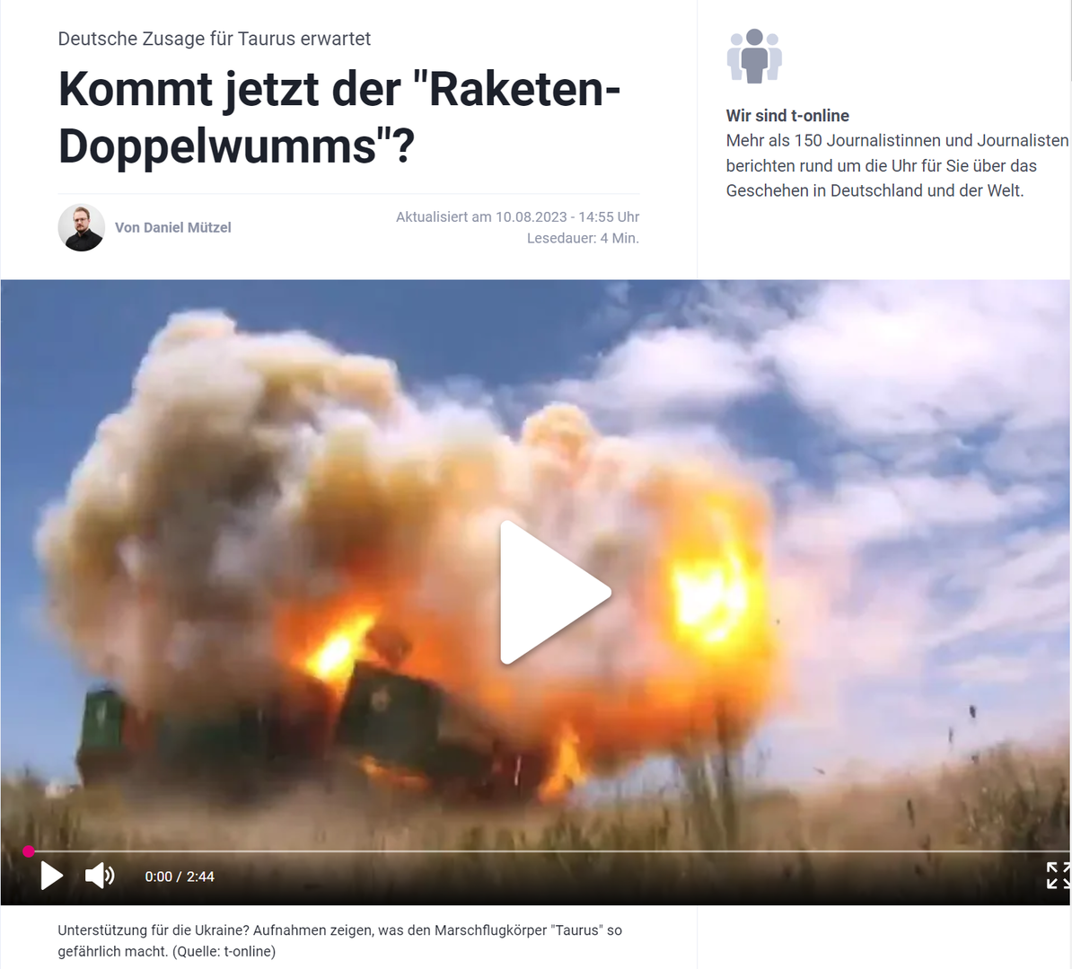Theo ấn phẩm, Văn phòng Thủ tướng Liên bang hiện đang làm việc về vấn đề chuyển giao tên lửa với các đồng minh quan trọng nhất của mình, chủ yếu là với Hoa Kỳ. Cho đến thời điểm hiện tại, chính quyền Đức đã bác bỏ khả năng cung cấp cho Kiev loại tên lửa Taurus có tầm bắn lên tới 500 km. Theo t-online, Bộ chỉ huy Không quân Đức đã "bật đèn xanh" cho việc cung cấp tên lửa.