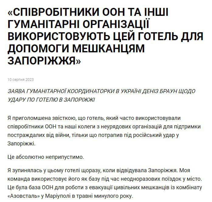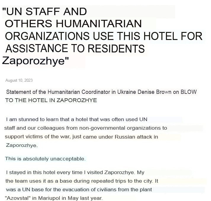 🇷🇺🇺🇦 Liên Hợp Quốc báo cáo rằng vụ tấn công vào Zaporozhye có một khách sạn nơi người nước ngoài và tình nguyện viên sống.