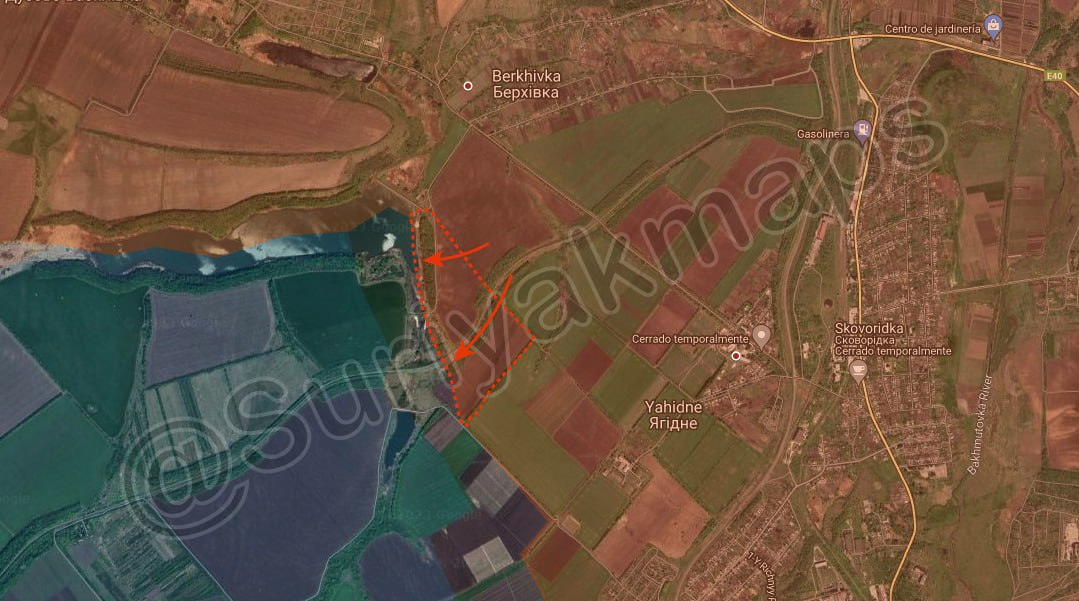 Tình hình phía bắc Bakhmut: Quân đội Nga giành lại quyền kiểm soát một loạt vị trí phía đông bắc Hồ chứa nước Berhovske, gia tăng vùng đệm phía nam Berkhivka/Берхівка.