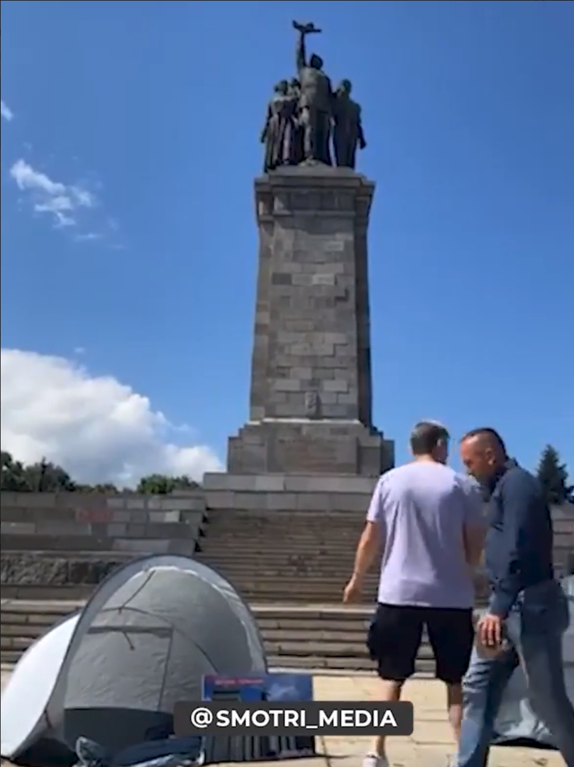 Đêm đó, những kẻ phá hoại không rõ danh tính đã phá vỡ một phiến đá có dòng chữ "tượng đài của quân đội Liên Xô - người giải phóng khỏi những người dân Bulgaria biết ơn."