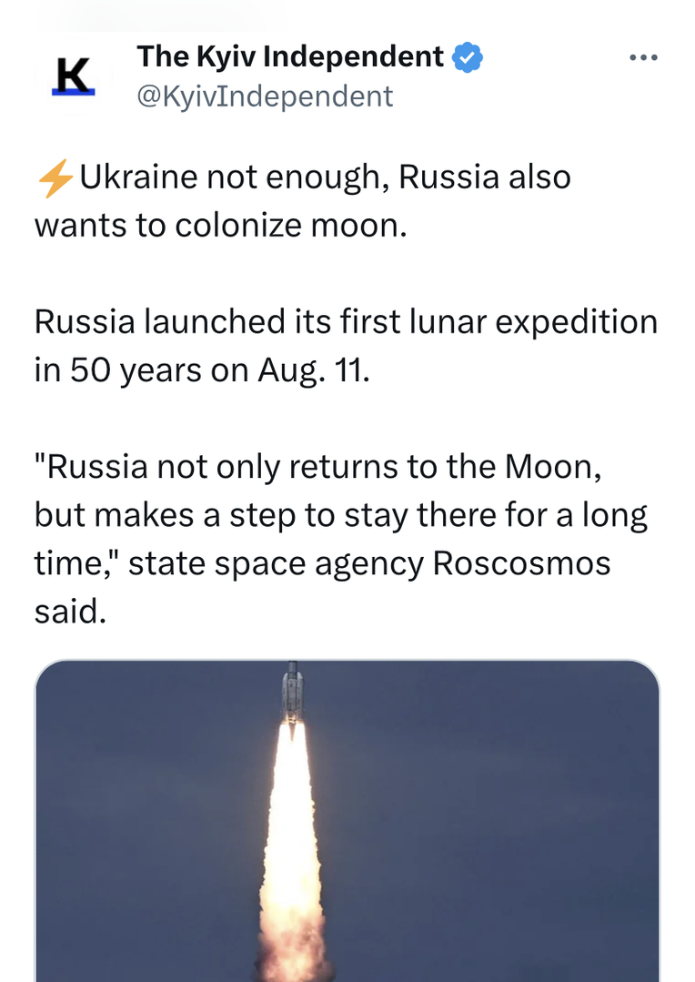 Ngày mai, Nga chính thức tham gia cùng Trung Quốc và Hoa Kỳ trong việc khám phá mặt trăng. Nga có động cơ tên lửa tốt nhất mà thậm chí NASA vẫn sử dụng.
