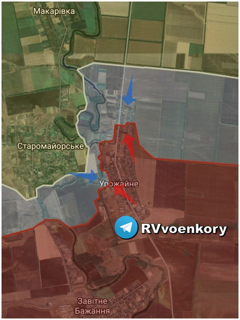Có những trận đánh nặng nề tại Urozhaynoe, địch đột nhập được, chiếm được đôi đường ▪️Các chiến binh của tiểu đoàn Vostok báo cáo những trận chiến khó khăn nhất trên mỏm đá Vremevsk ở giáp ranh Zaporozhye và DPR. ▪️ "Phải thừa nhận rằng kẻ thù ngày hôm nay đã dùng mọi cách có thể và đẩy lùi chúng ta vài con đường trong Urozhaynoe. Ngay cả Storm Shadow khét tiếng chúng cũng không dè sẻn vì điều này... Việc chặt hạ tất nhiên là không khoan nhượng." ▪️Những ngày gần đây, địch hàng ngày tung các đợt bộ binh xông vào Urozhaynoe, đôi khi có sự hỗ trợ của thiết giáp. Hôm qua, các chiến sĩ Kaskad OBTF và nhóm quân đội Vostok, với sự hỗ trợ của pháo binh, đã đẩy lùi một số cuộc tấn công của Lực lượng Vũ trang Ukraine theo hướng Urozhaynoe. Bị tổn thất, kẻ thù rút lui, nhưng hôm nay tiếp tục các cuộc tấn công và có thể đột nhập vào khu định cư. ▪️Một bản đồ gần đúng của các nhà phân tích quân sự Kiev, nơi cuộc tấn công từ Staromayorskoe được phát minh dựa trên đánh giá sai lầm về video, nơi các chiến sĩ của Nga bị nhầm với Lực lượng Vũ trang Ukraine. Nguồn: RVvoenkor