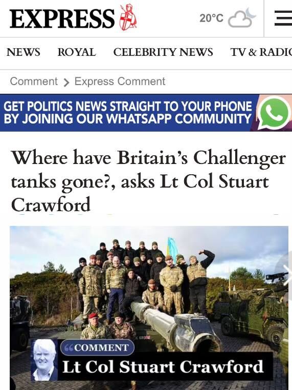 ✔️Đã thấy các phương tiện khác do Anh cung cấp đang hoạt động, đáng chú ý là phương tiện bánh xích Alvis Stormer, cũng như những bức ảnh nghiệt ngã về các xe bọc thép chở quân Mastiff của Anh bị phá hủy trên chiến trường. Nhưng cho đến nay không hề có dấu hiệu nào của Challenger-2.
