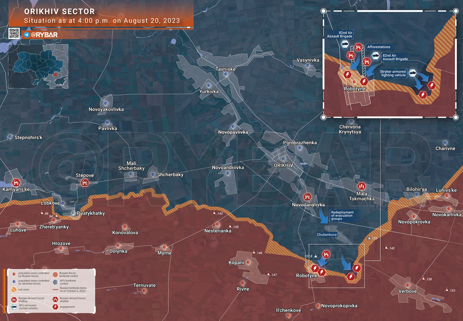 🇷🇺🇺🇦 Tình hình khu vực Orekhovsky tính đến 16:00 ngày 20 tháng 8 năm 2023