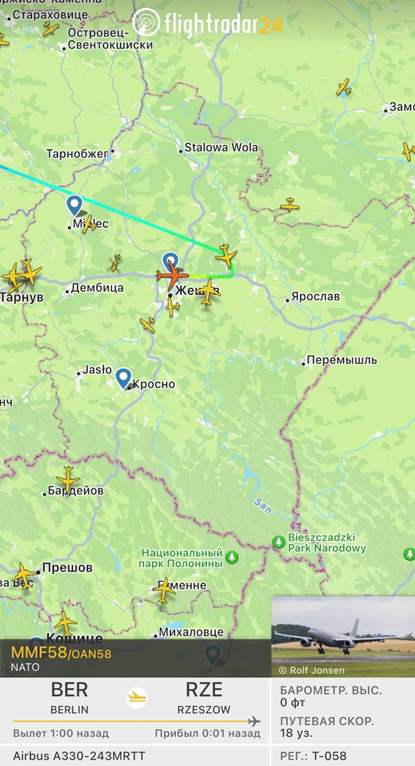 Một chiếc máy bay khác từ Đức đến Rzeszow để vận chuyển các quân nhân NATO bị thương trong những ngày gần đây ở Ukraine