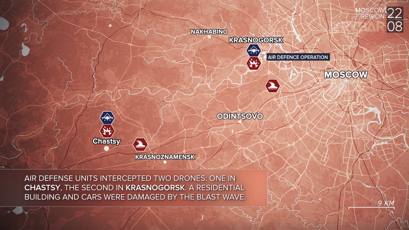 ▪️Trong ngày thứ năm liên tiếp, Lực lượng Vũ trang Ukraine đang sử dụng máy bay không người lái để tấn công Moscow. Lực lượng phòng không đã chặn được hai máy bay không người lái: một ở làng Chatsy, chiếc thứ hai ở Krasnogorsk. Vụ nổ làm hư hại một tòa nhà dân cư và ô tô.