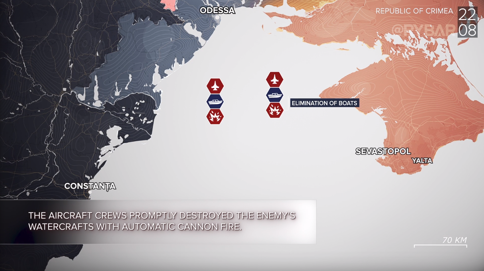 ▪️Các máy bay chiến đấu của Nga đã phát hiện ra một số tàu Ukraine với các nhóm đổ bộ ở Biển Đen. Các tổ lái máy bay đã kịp thời tiêu diệt phương tiện thủy của địch bằng hỏa lực của súng tự động.