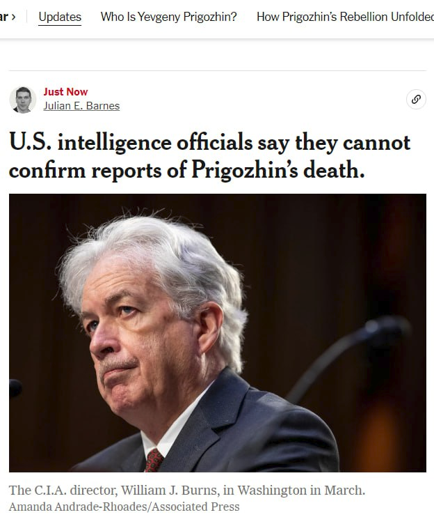 🇺🇸 CIA không xác nhận cái chết của Prigozhin — The New York Times