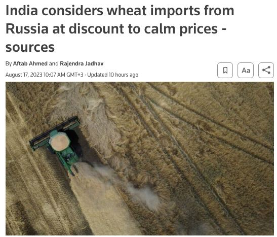 Theo số liệu chính thức, Ấn Độ đang xem xét mua 9 triệu tấn lúa mì từ Nga để có tác động lớn hơn nhiều đến giá cả.
