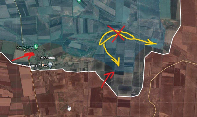 ở làng Rabotino ... Nhóm tiến công của Lực lượng vũ trang đã bị đánh bại, một cuộc tấn công lớn của máy bay không người lái Nga .... 17/08/2023