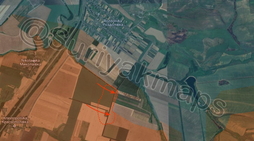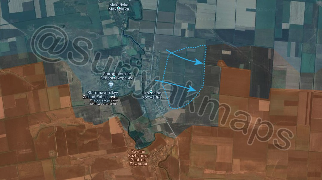 Tình hình phía tây nam Donetsk: sau khi chiếm được Urozhaine/Урожайне Quân đội Ukraine bắt đầu lại cuộc tiến công mở rộng vùng đệm xung quanh thị trấn về phía đông. Như đã đề cập trước đó, mục tiêu tiếp theo của Ukraine là đánh chiếm các khu vực cao phía tây và phía đông sông Mokri Yali.