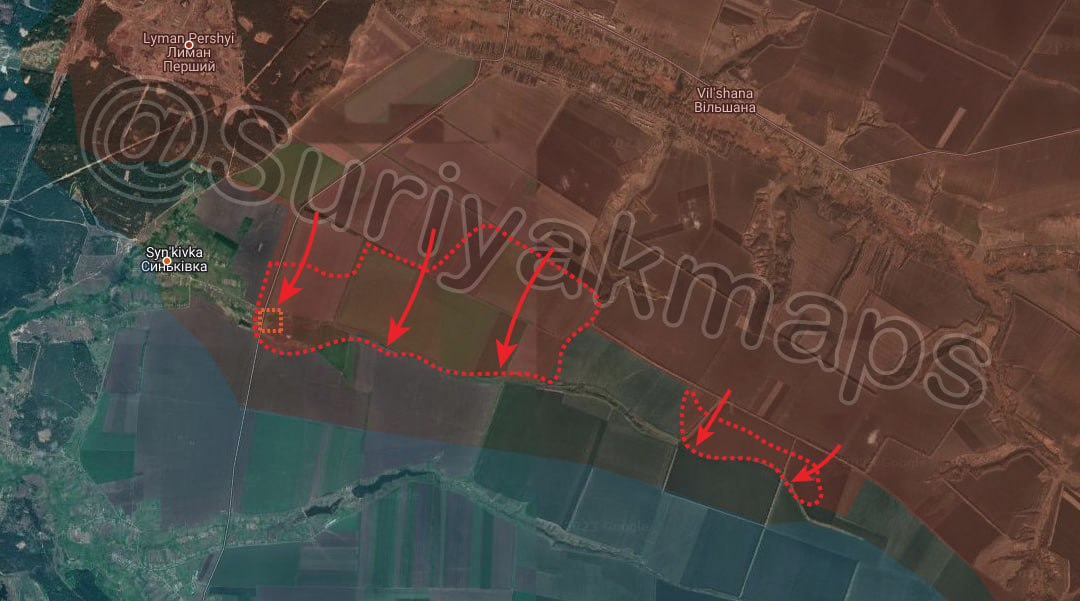 Tình hình ở mặt trận đông bắc: Trong 48 giờ qua, Quân đội Nga đã bảo vệ được giao lộ giữa thị trấn Syn'kivka/Синьківка và Petropavlivka/Петропавлівка, do đó bắt đầu một cuộc bao vây thị trấn đầu tiên. Ngoài ra, một loạt vị trí của Quân đội Ukraine đã bị chiếm ở phía nam Vil'shana/Вільшана.