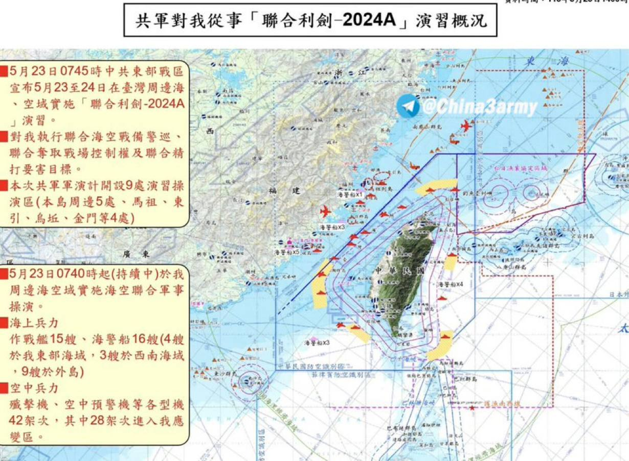 Trung Quốc ra mắt Joint Sword-2024A để đáp lại lễ khánh thành Lai Ching-te: Eo biển Đài Loan & phía bắc, nam và đông đảo Đài Loan, & xung quanh các đảo tiền tuyến Kinmen, Matsu, Wuqiu và Dongyin.