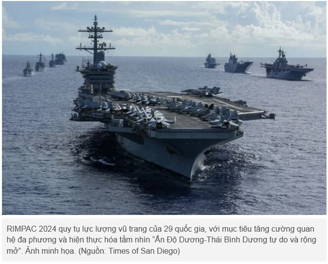 Trong bối cảnh căng thẳng khu vực gia tăng, từ ngày 27/6, Mỹ tổ chức tập trận Vành đai Thái Bình Dương (RIMPAC) 2024 trong 5 tuần tại Hawaii, cuộc tập trận được xem như “cuộc tập trận hải quân quốc tế lớn nhất thế giới”.