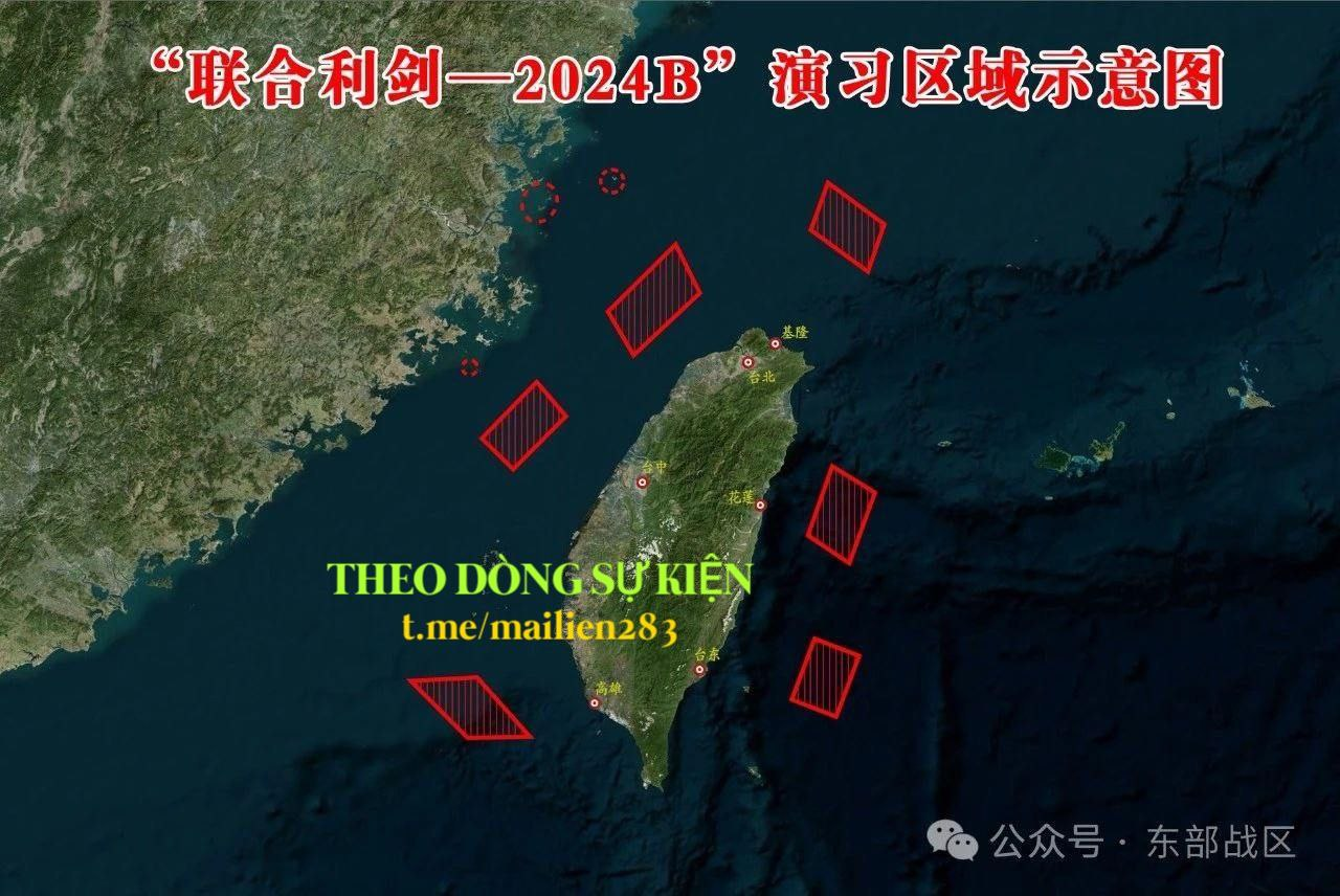 Vào thứ Hai, Bộ Tư lệnh Chiến khu miền Đông của Quân Giải phóng Nhân dân Trung Quốc (PLA) đã điều động các lực lượng thuộc lục quân, hải quân, không quân và lực lượng tên lửa tham gia cuộc diễn tập quân sự chung mang mật danh “Joint Sword-2024B” tại Eo biển Đài Loan, cũng như các khu vực phía bắc, nam và đông của đảo Đài Loan. Với việc các tàu và máy bay tiếp cận gần đảo Đài Loan từ nhiều hướng khác nhau, lực lượng thuộc các binh chủng tham gia diễn tập chung, tập trung vào các nội dung như tuần tra sẵn sàng chiến đấu trên biển và trên không, phong tỏa các cảng và khu vực trọng yếu, tấn công mục tiêu trên biển và đất liền, cũng như giành ưu thế toàn diện. Cuộc diễn tập nhằm kiểm tra khả năng tác chiến chung của lực lượng quân sự thuộc Bộ Tư lệnh Chiến khu. Đây cũng là lời cảnh báo nghiêm khắc đối với các hành động ly khai của lực lượng “Độc lập Đài Loan”. Đại tá cấp cao Lý Hy, phát ngôn viên của Bộ Tư lệnh Chiến khu miền Đông, tuyên bố rằng đây là một hoạt động hợp pháp và cần thiết nhằm bảo vệ chủ quyền quốc gia và sự thống nhất đất nước.