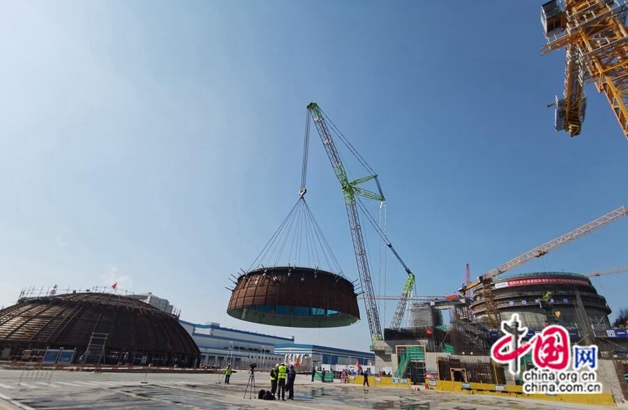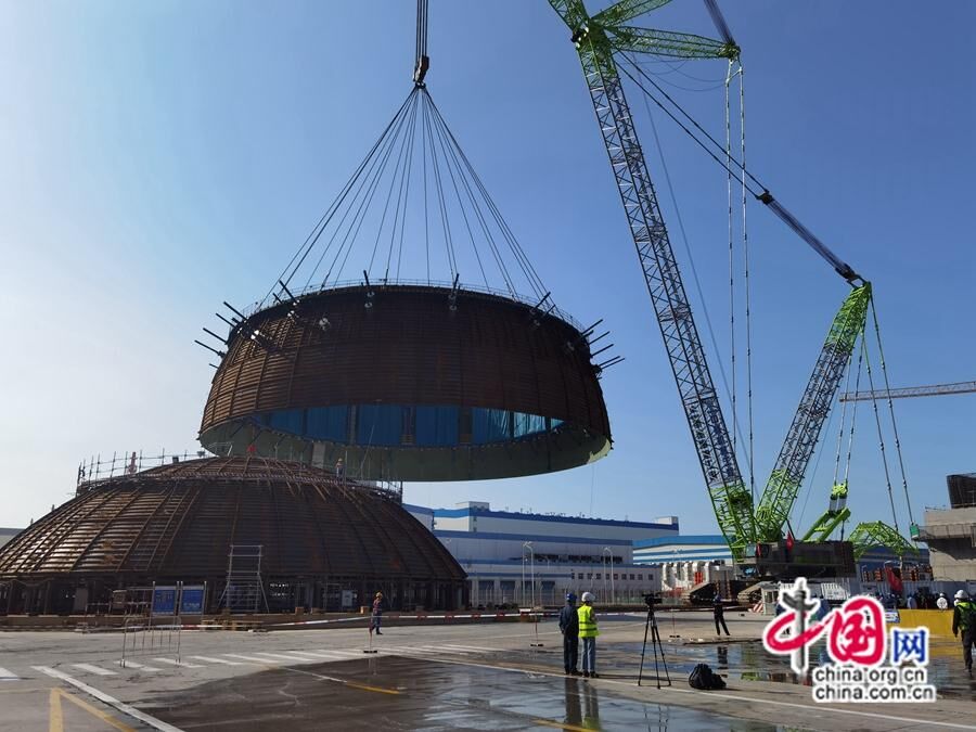 Khối lượng của thiết kế này là hơn 370 tấn. Chiều cao 12 mét. Đây là cách mái vòm tương lai của ngăn chứa bên trong lò phản ứng của tổ máy điện thứ bảy của một trong những nhà máy điện hạt nhân lớn nhất thế giới, Nhà máy điện hạt nhân Tianwan, trông như thế nào.