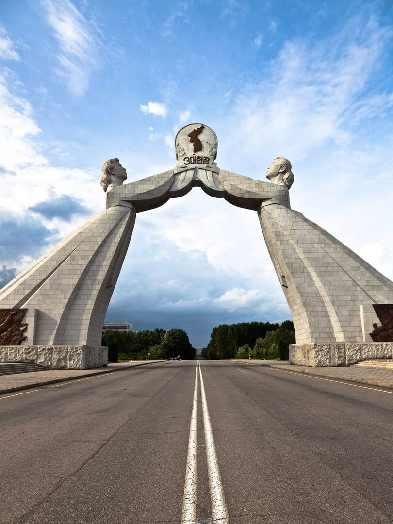 👉[2] Phá bỏ Tượng đài Thống nhất tại Cổng Nam Bình Nhưỡng (ảnh dưới). Còn gọi là Cổng Thống Nhất trên đại lộ Thống Nhất nối Bình Nhưỡng với Khai Thành.