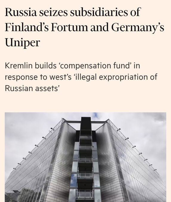 Fortum của Phần Lan và Uniper của Đức đã được đặt dưới sự quản lý của chính quyền do hành vi biển thủ tài sản của Nga ở châu Âu.