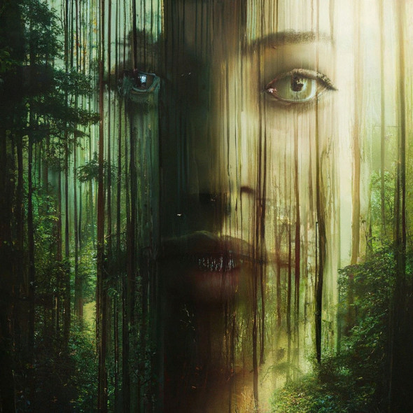 Yêu cầu cho Masterpiece: woman and forest, double exposure