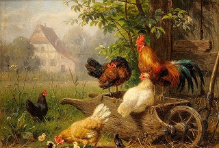 - Có năm ả gà mái đã tự vặt tiệt lông đi để thi xem đứa nào gầy mòn đi nhất vì tương tư một anh gà sống. Sau đó chúng đánh nhau, máu me đầm đìa rồi chết cả nút. Thật là hiểm nhục gia phong và lại còn làm thiệt hại lớn cho nhà chủ nữa.
