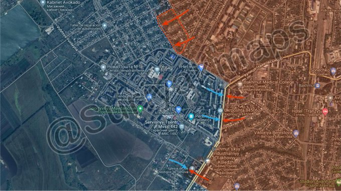 #Quân đội Nga tiến từ trục tây bắc và tiến đến phố Vyzvolyteliv Donbasu. Hơn nữa, quân đội đã băng qua đại lộ Chaikovskoho và cố gắng tiến đến phố Molodizhna. Các cuộc đụng độ với #UkrainianArmy đang diễn ra tại các tòa nhà đầu tiên của quận Cherema.
